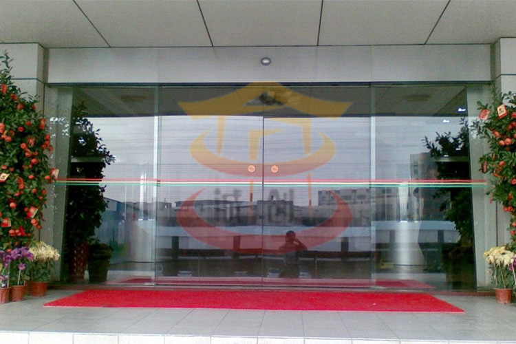 本發明采用一扇門扇的存放空間封閉在兩扇門中的結構,極大限度地利用有限的空間,開口寬度可達標準滑動門的1.3 - 1.5倍,適用于人流大的地方或較大物體的進出開口,如汽車展廳、展覽館、會議中心等。